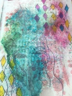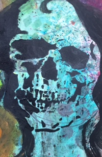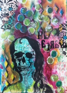 Then I used Paper Artsy Infusions to add depth and interest. Once dry I added some doodled diamonds – inspired by Tracy Scott and then my stencilled skull by Andy Skinner.
