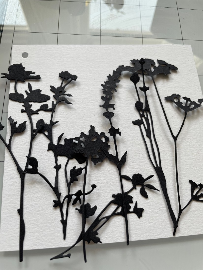 Next I die cut some florals from Sizzix in black card stock, to create the silhouette effect.