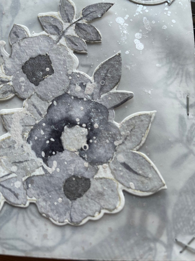 I forgot to take a picture of the stamped image but its from a set by Simon says stamp which also comes with a die. Using the same paint as before i painted the image and then die cut it out.