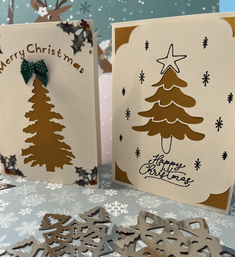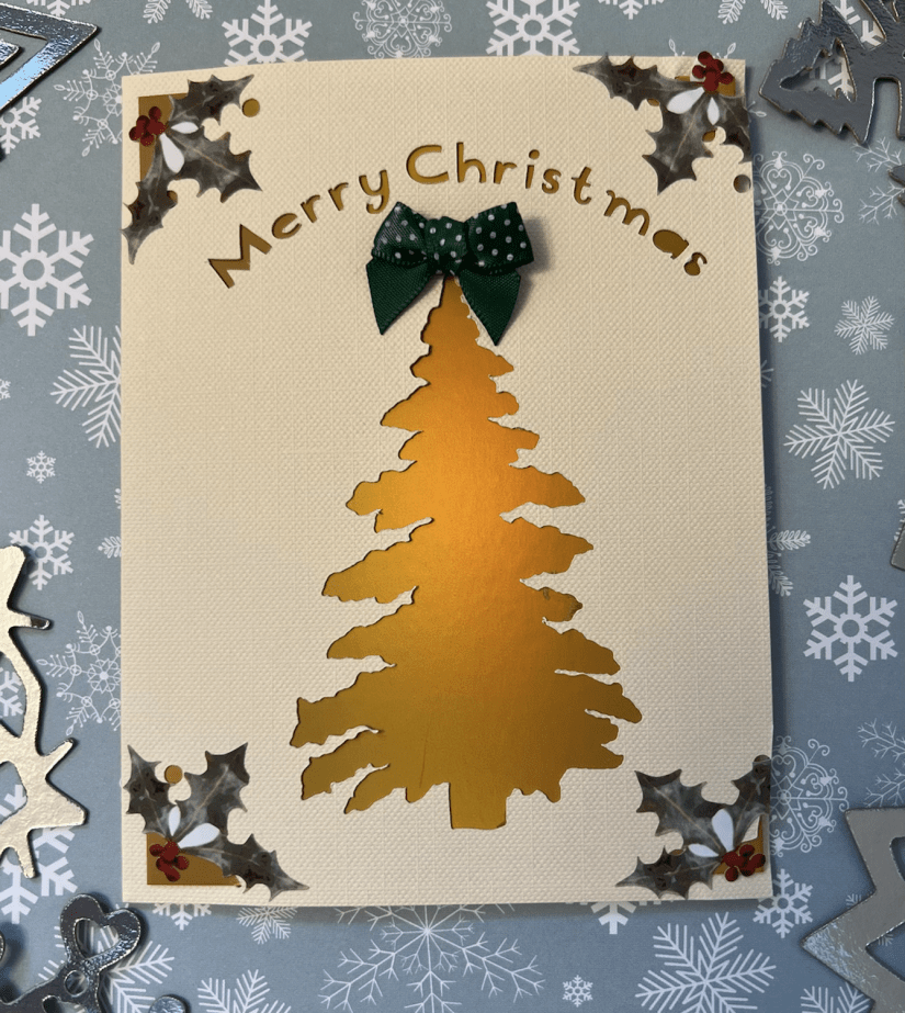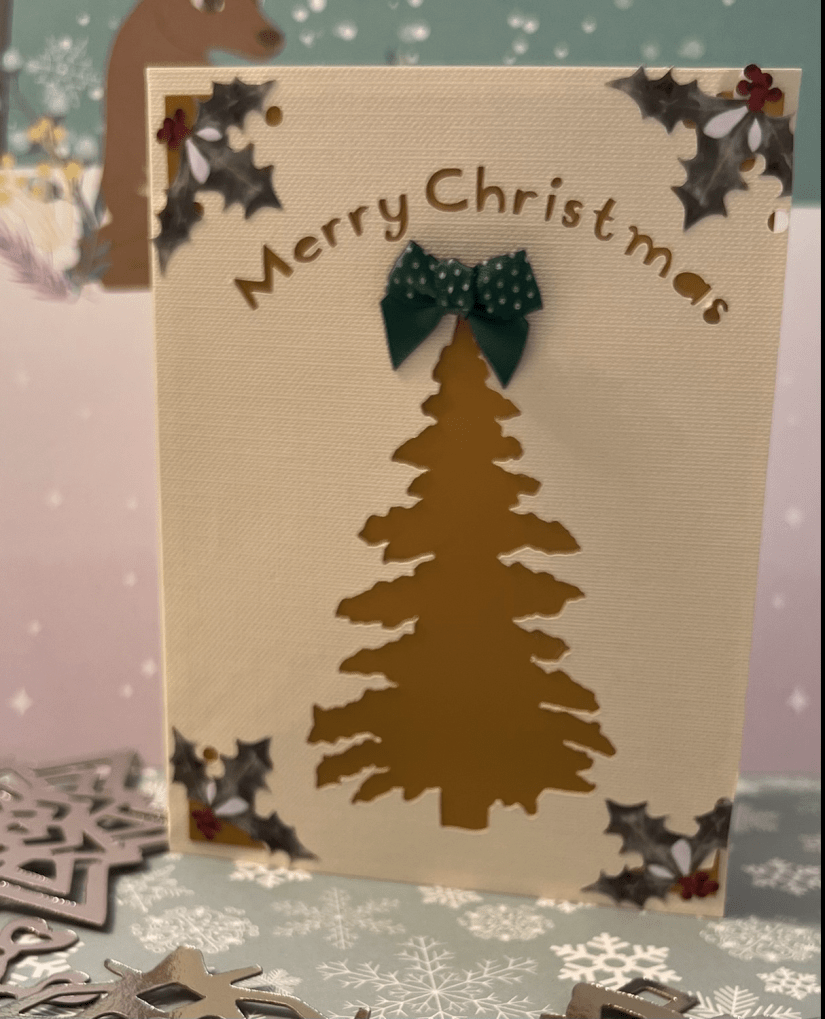 It is a very simple card which I cut on my Cricut Joy (my first project) I was so pleased with it and look forward to many hours of pleasure for the smaller project. It uses the same programme on the computer so I was able to use a tree I designed last year.