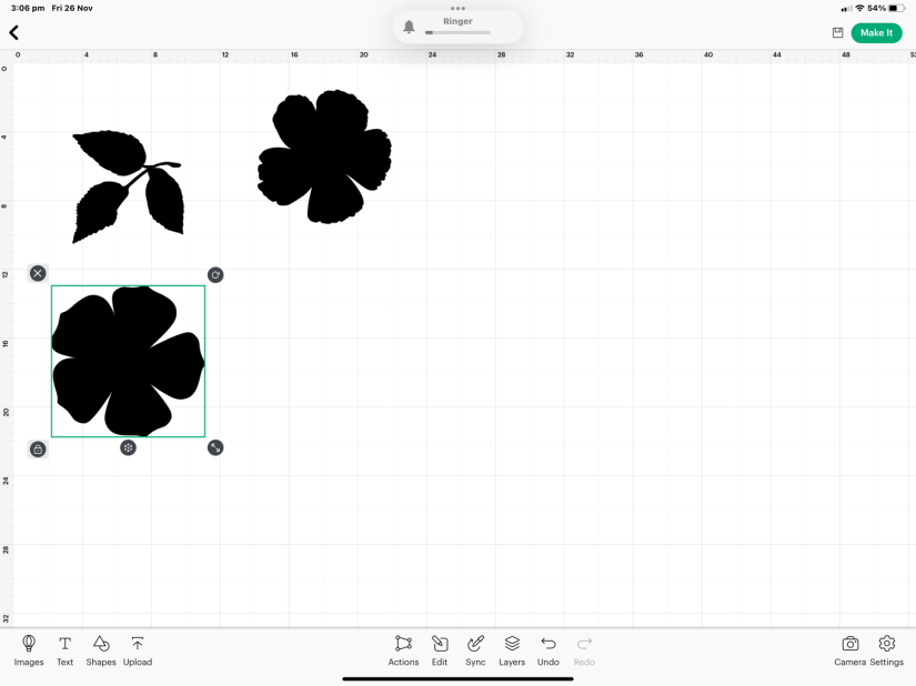 Once I was happy with the sketch (I decided to exclude the flower image which had fluted edges as I preferred the other for this project). I turned it into a finished design and exported it as a PNG file and opened it in Cricut’s Design Space ( this is a dedicated programme to use with Cricut tools such as the Maker, Explore machines Mug Press etc.)