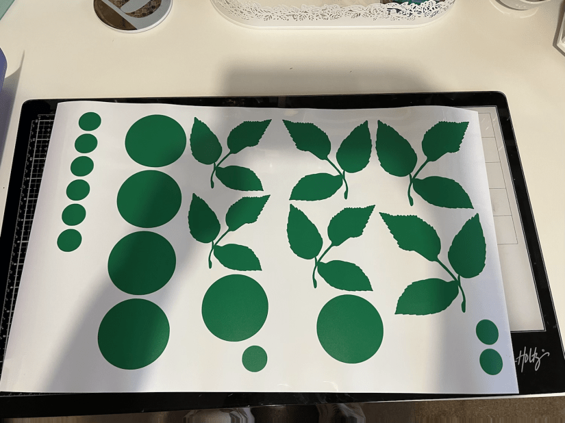 Next I weeded away the the edges of the vinyl leaving only the cut images.