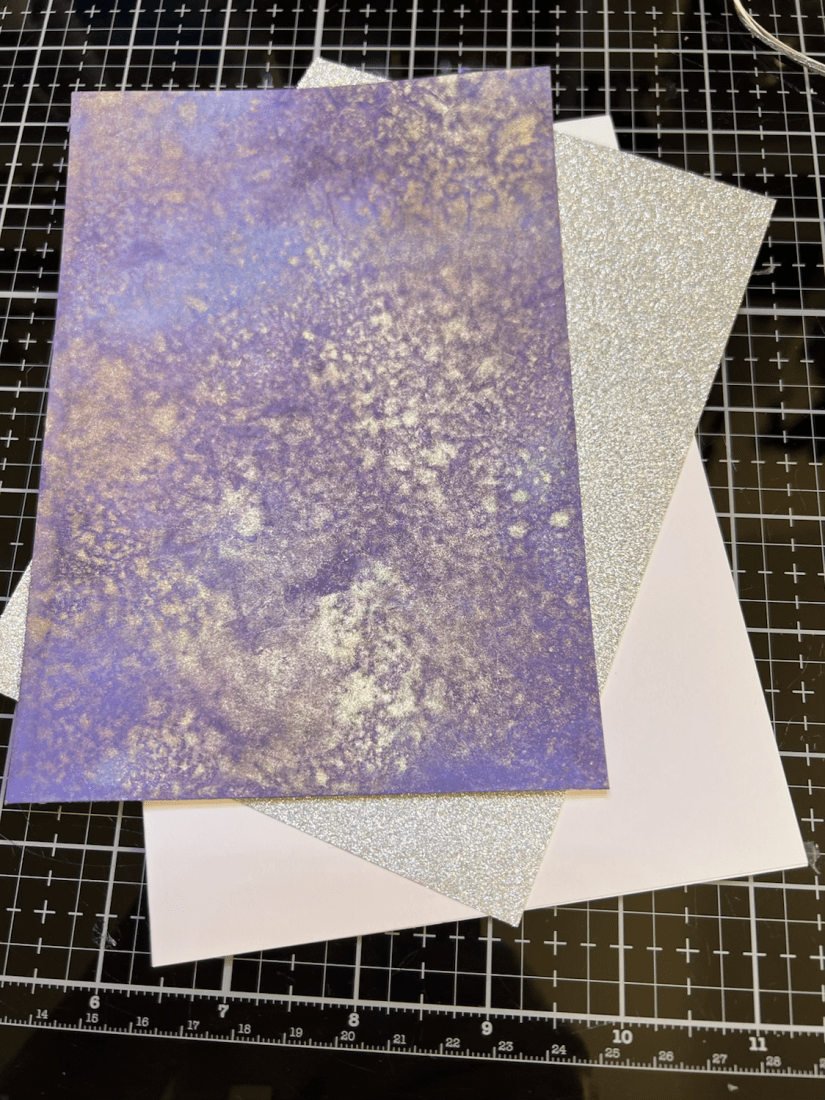 I cut some glitter card to layer my background onto and used a white 7×5 card.