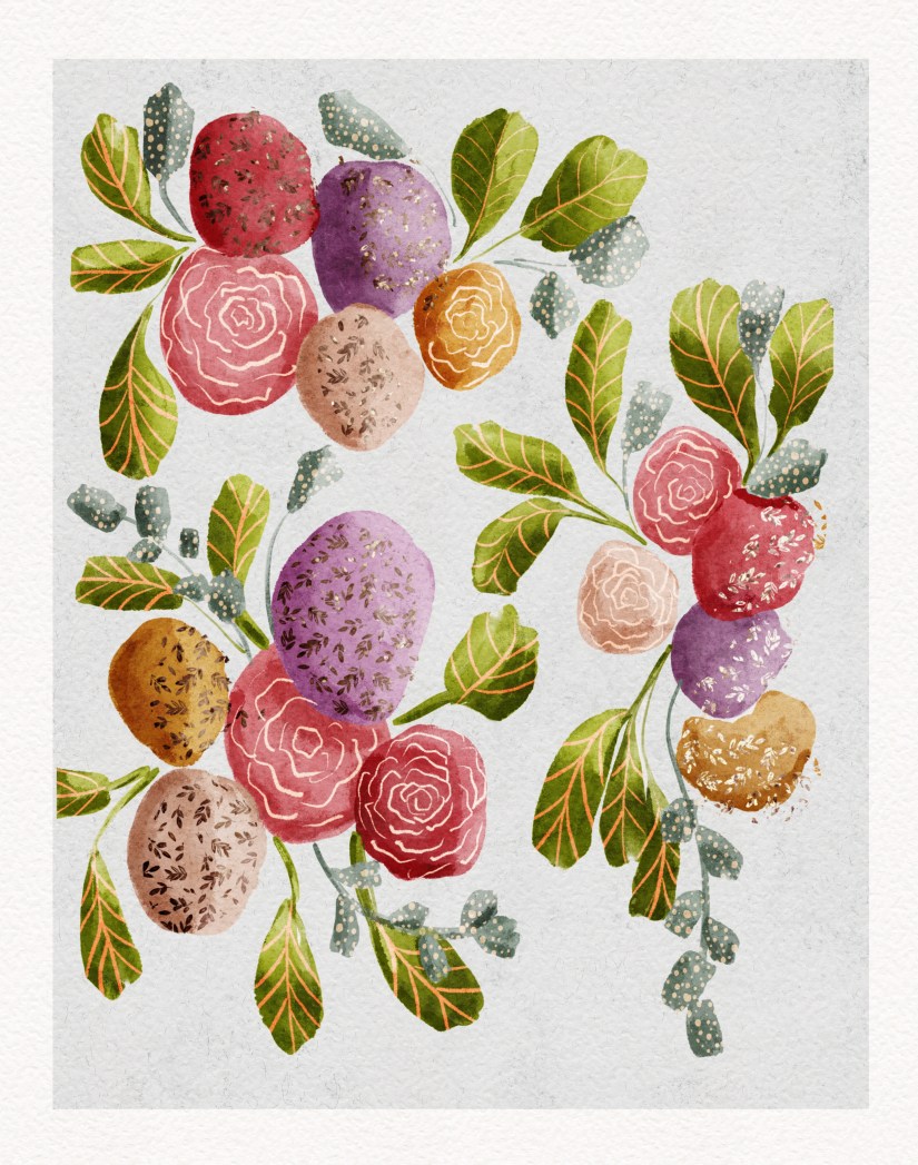 So now I’d finished the painting I that it needed a background colour but as I’m not good at adding that around the flowers etc I decided to add it digitally. I took a very clear photo and took it into photoshop and removed the coloured areas from its existing background. I saved this as a png file and then took it into Procreate where I could add a textures background, which I coloured light gray. I made this slightly smaller than the original size to add a layered effect.
