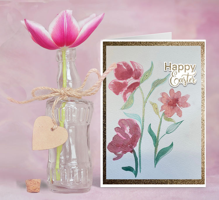 Earlier in the week I had received some new glittery paints and was eager to try them out. I used watercolour paints but you could easily use any of your water based painters in the same way. For example, all the Distress Inks and sprays can be used but I would water them down as they are very pigmented. You can still get them to make translucent layers which look really effective.