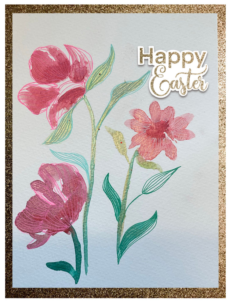 Once the pen was dry I cut The paper to the size of my card and and mounted it onto some glitter card And then onto my 5×7 card