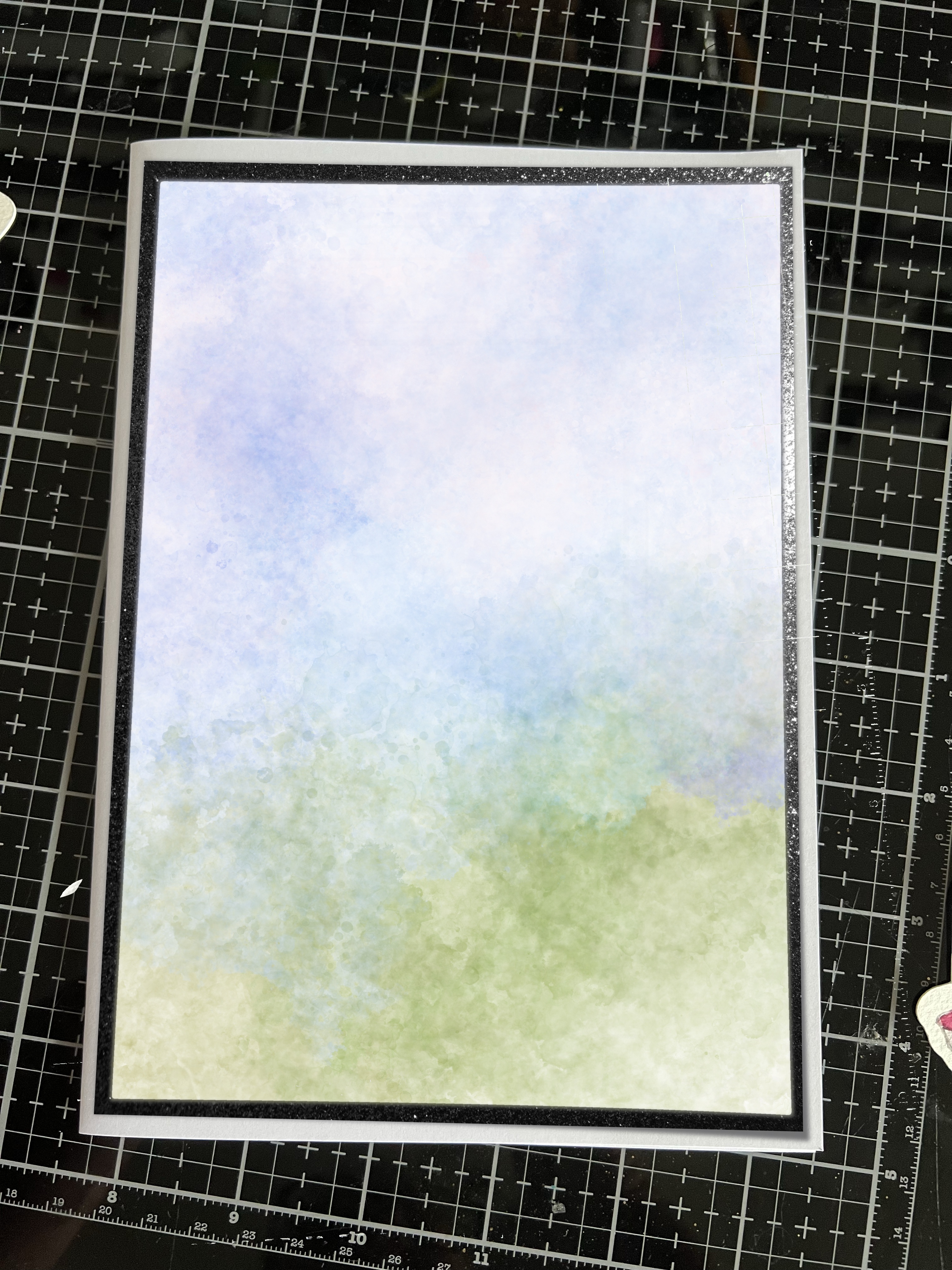 Once completely dry I created a card and added a silver mount I then added a layer which I gad Painted loosely with sky and ground. I kept It very simple as I wanted the car to be the focus.
