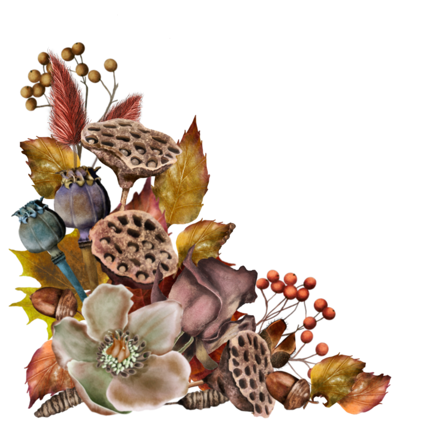 I used several methods for this board, first my ipad to create a collection of autumn inspired flowers seed heads and leaves. Using Procreate I created several individual flowers leaves and seed heads so that I could create a composition which I could use in several ways. For this project I used the composition below but as they are individually created each item can move, I can even change the colour.