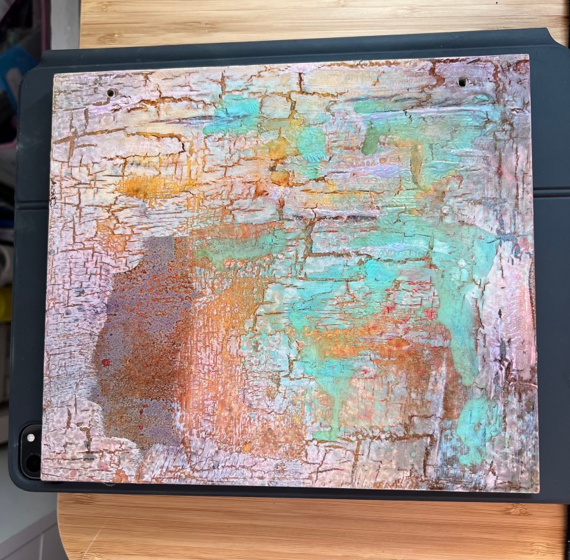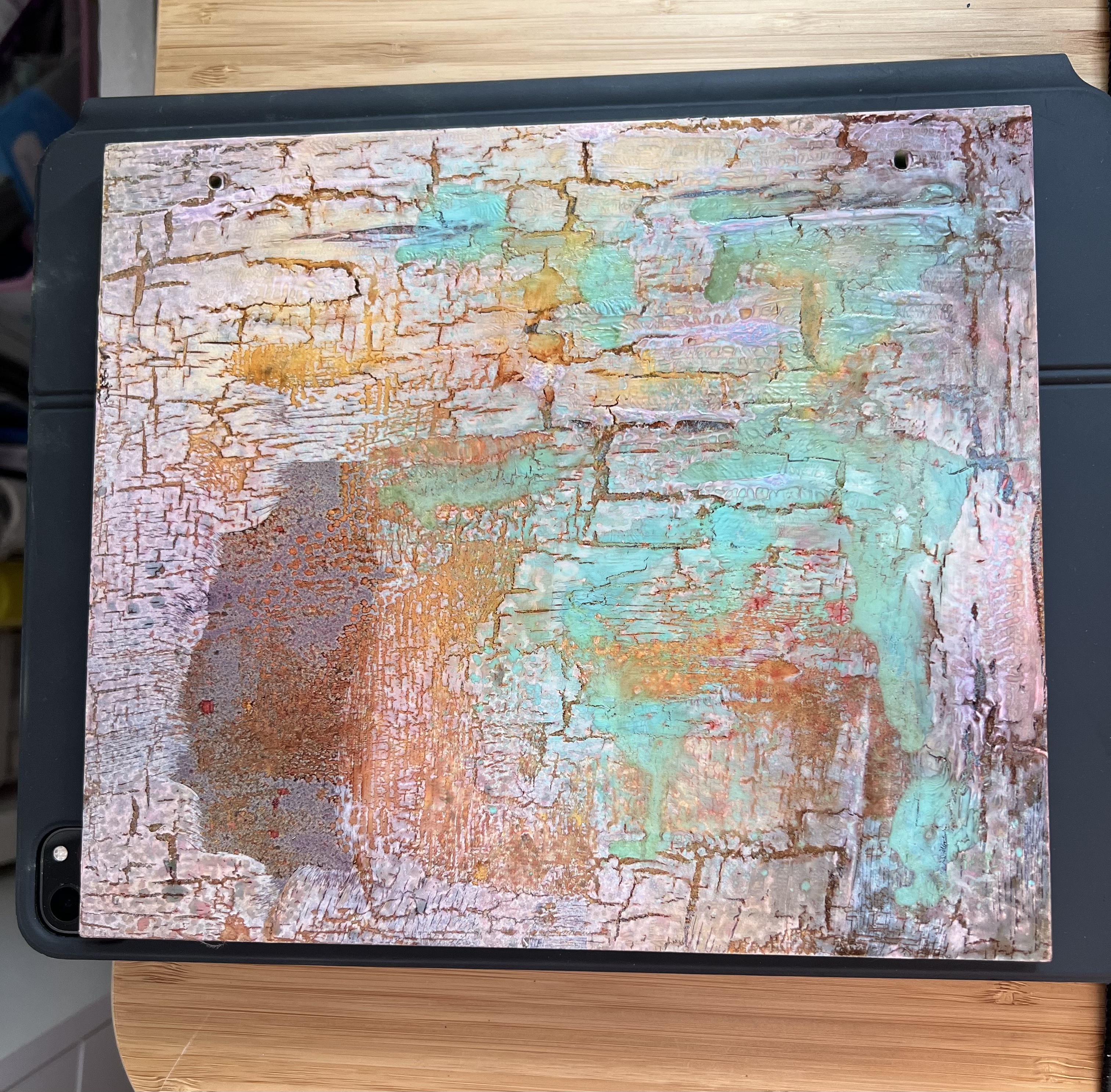 So this was an old board I purchased which I rubbed down and then gave two coats of brown acrylic. Then a coat of weathered wood and once dry I gave It a coat of cream acrylic then let it all do its magic.