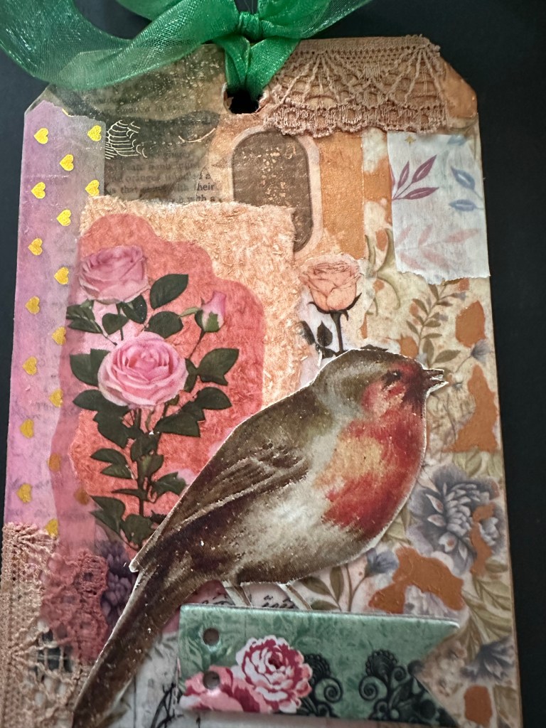 Wow, what a gorgeous vintage tag! The collage background with the robin looks so amazing – love it 😊. Wishing you a speedy recovery, take care! Hugs Jo x