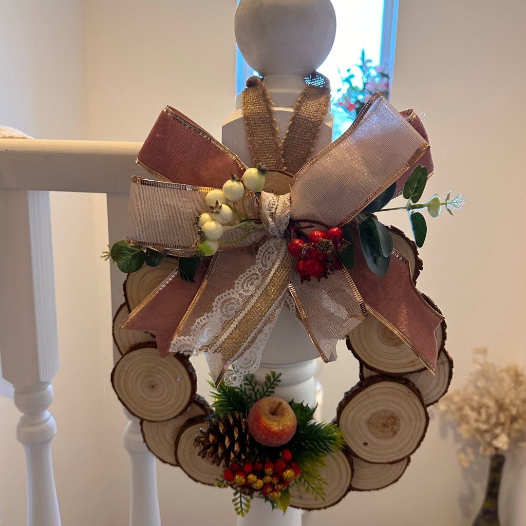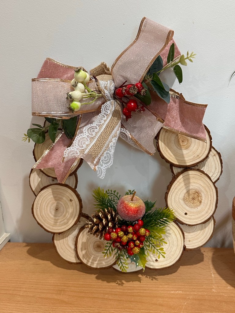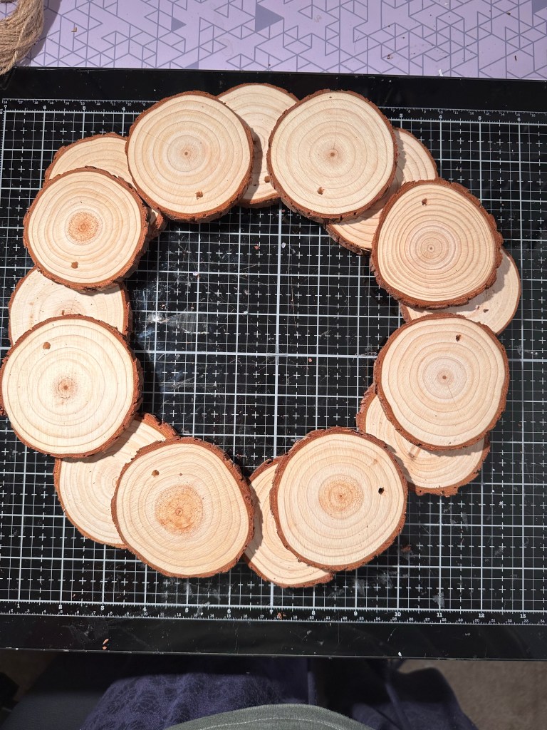 So the home decor piece I made first is this wood slice wreath.