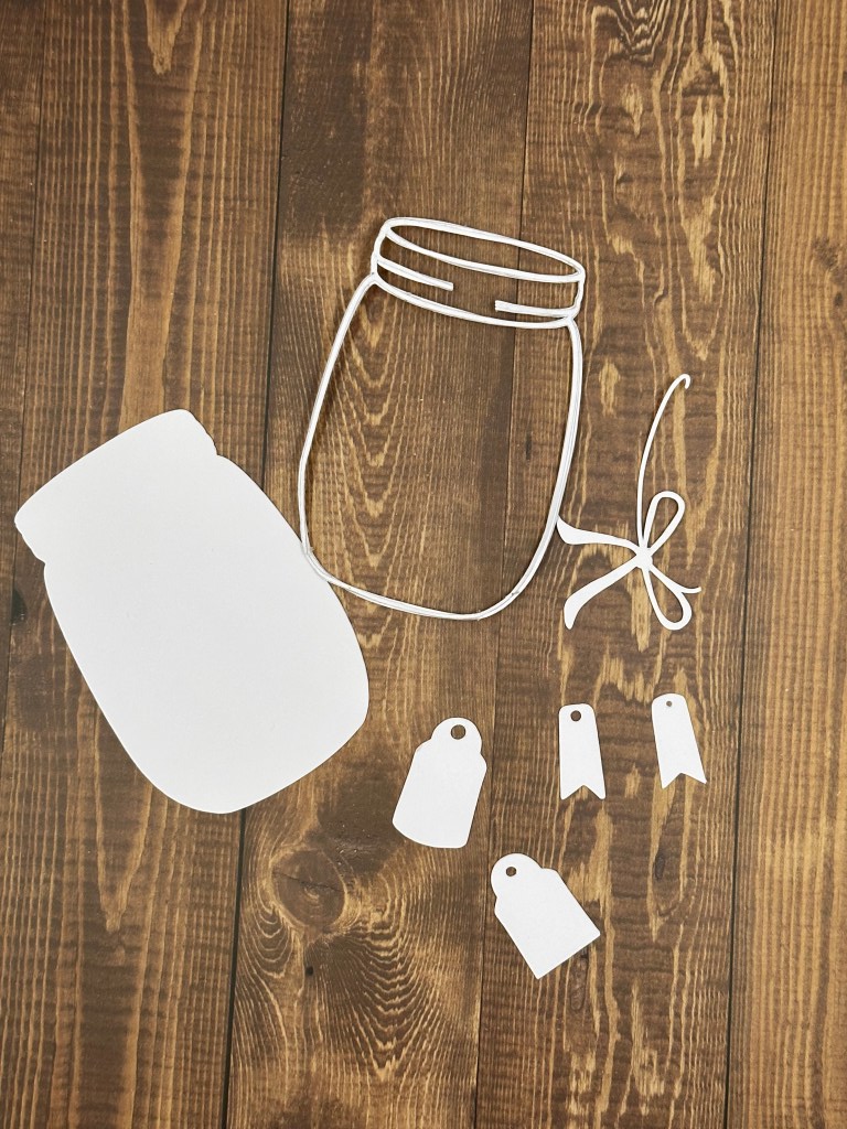 so I designed these elements in Procreate, sent them to Design space and cut them out. The outline of the jar I cut out 4 more times and stuck them together to add some dimension.