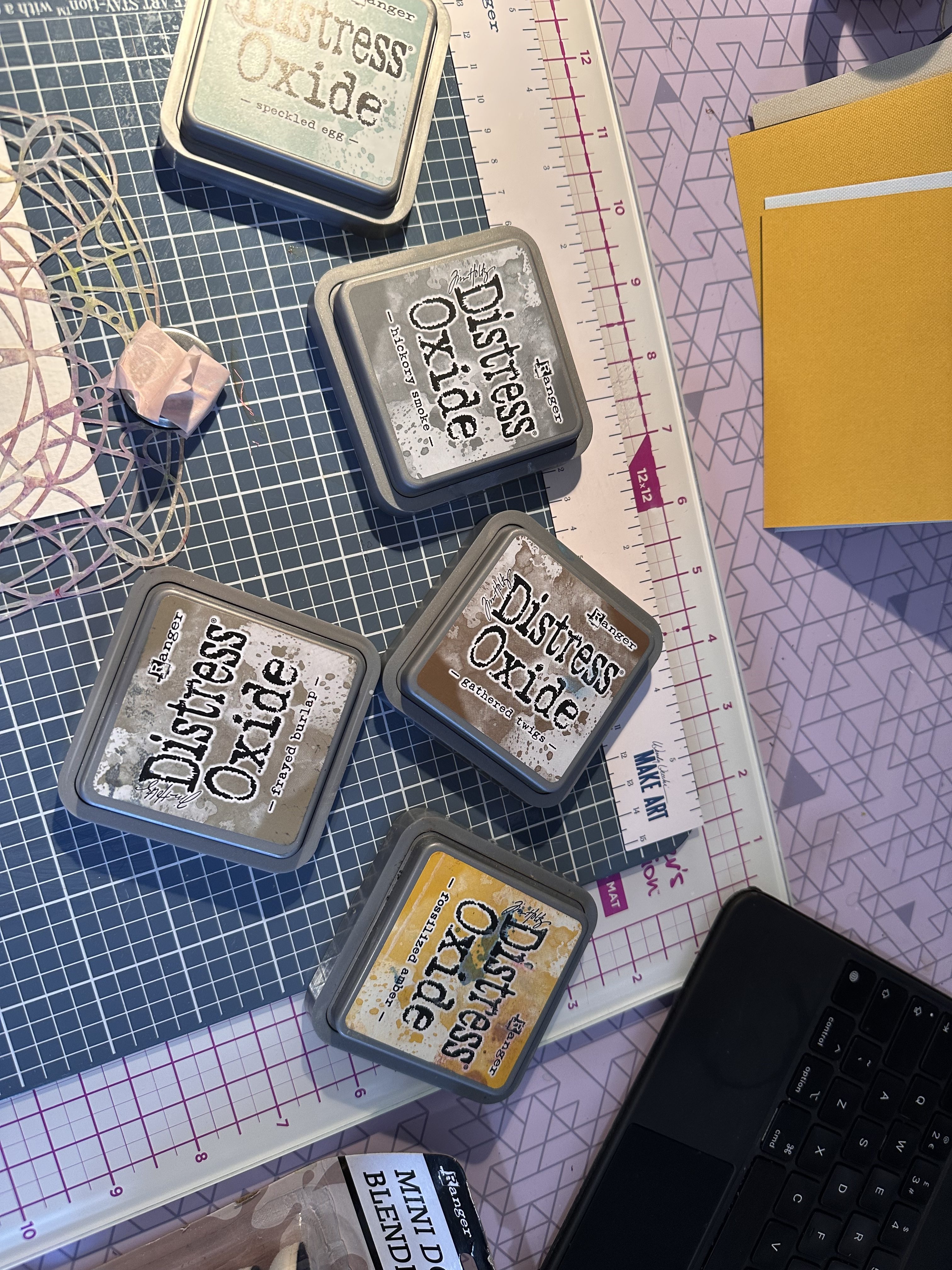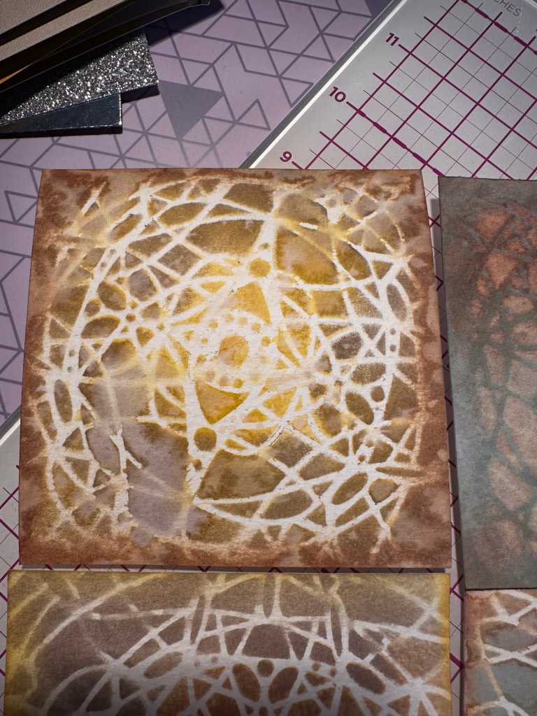 So the backgrounds for these were made with a stencil which I designed and distress oxide inks. You can see how I made the stencil here.