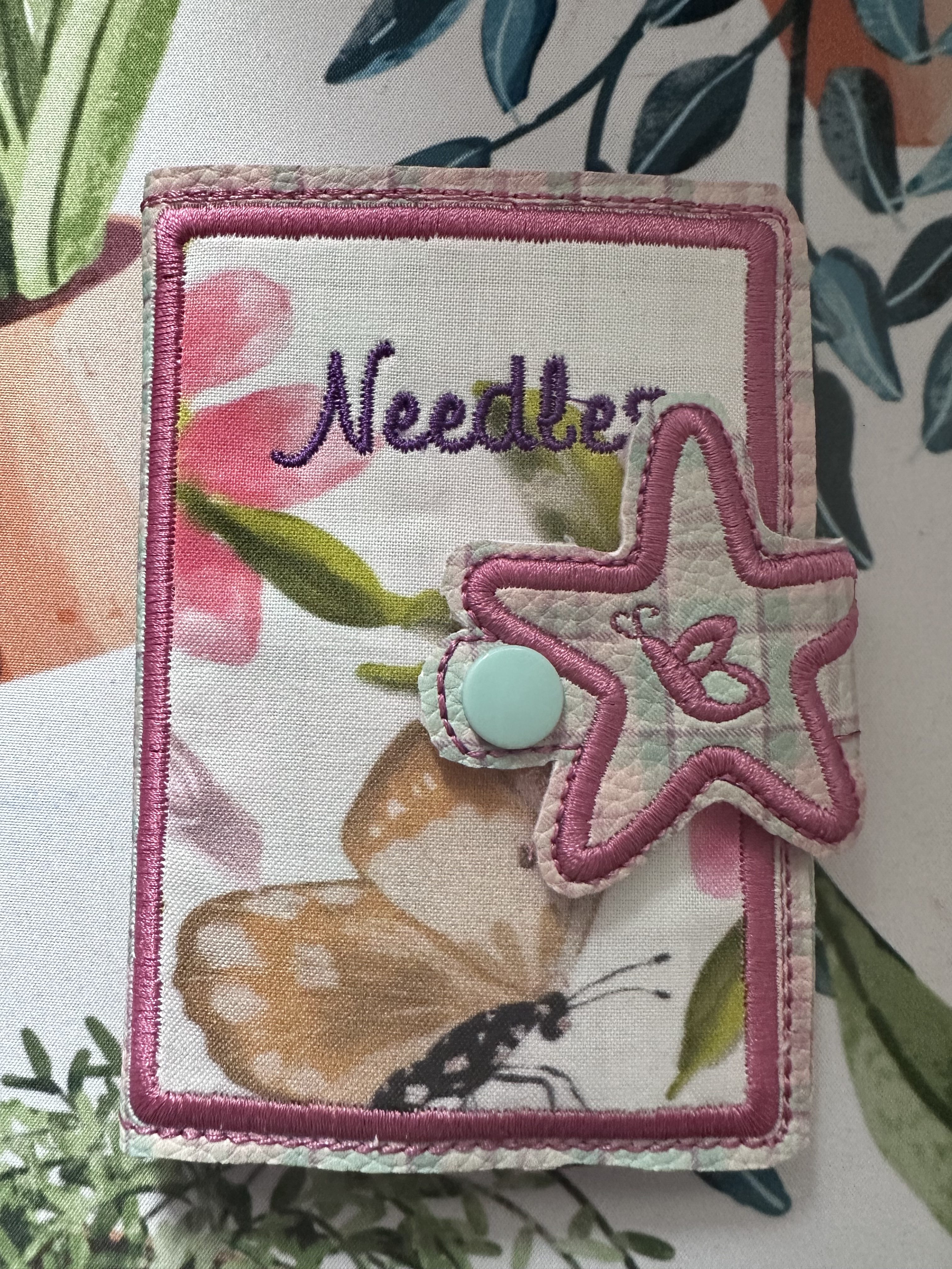Now everything is removed from the hoop and cut to size. Lastly I added the snap tab. I will now cut several layers of felt and secure to the inside so that I can keep all my sewing needles in one place.