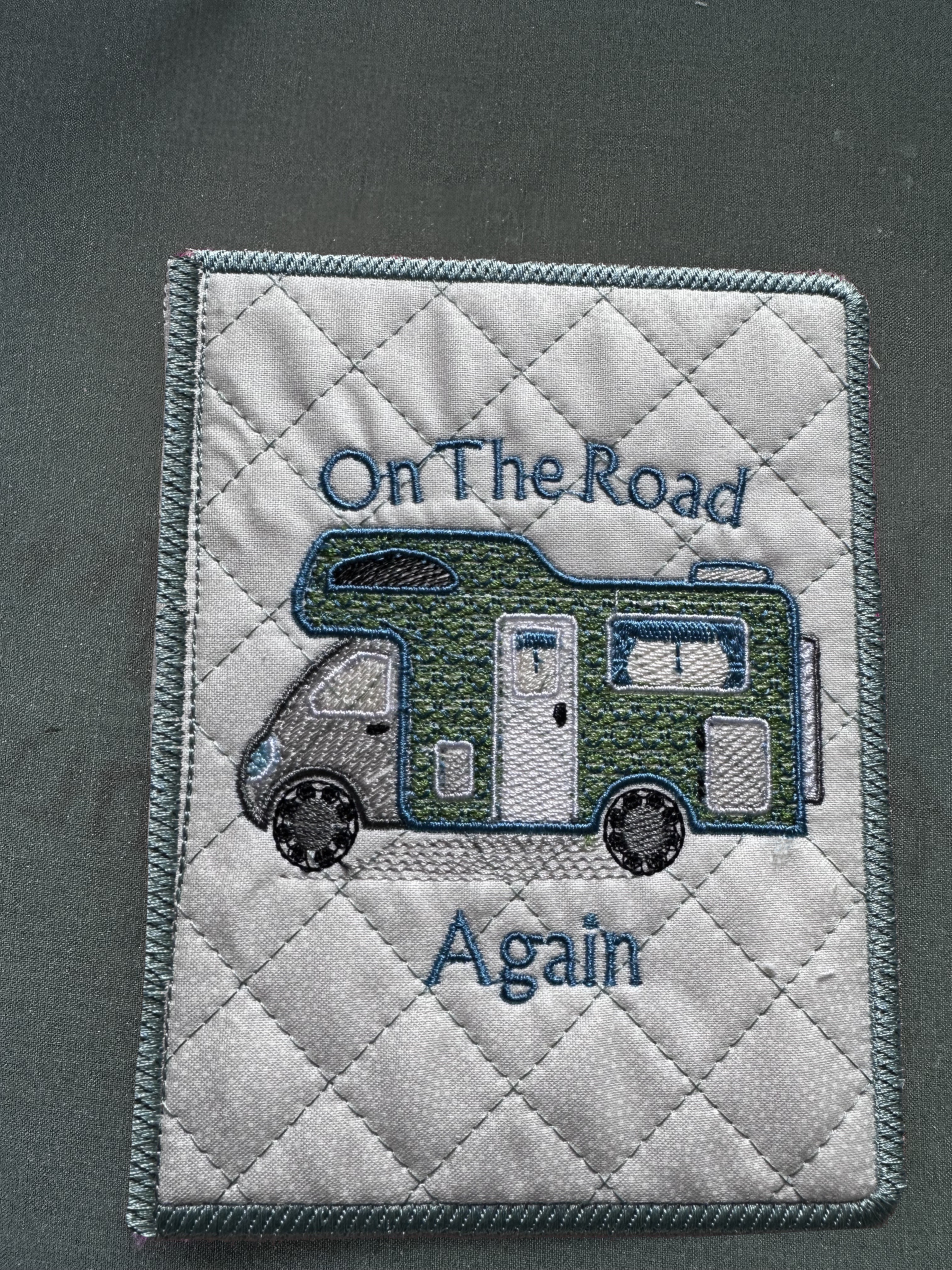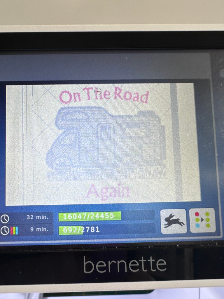 Here it’s starting to stitch the front of the caravan
