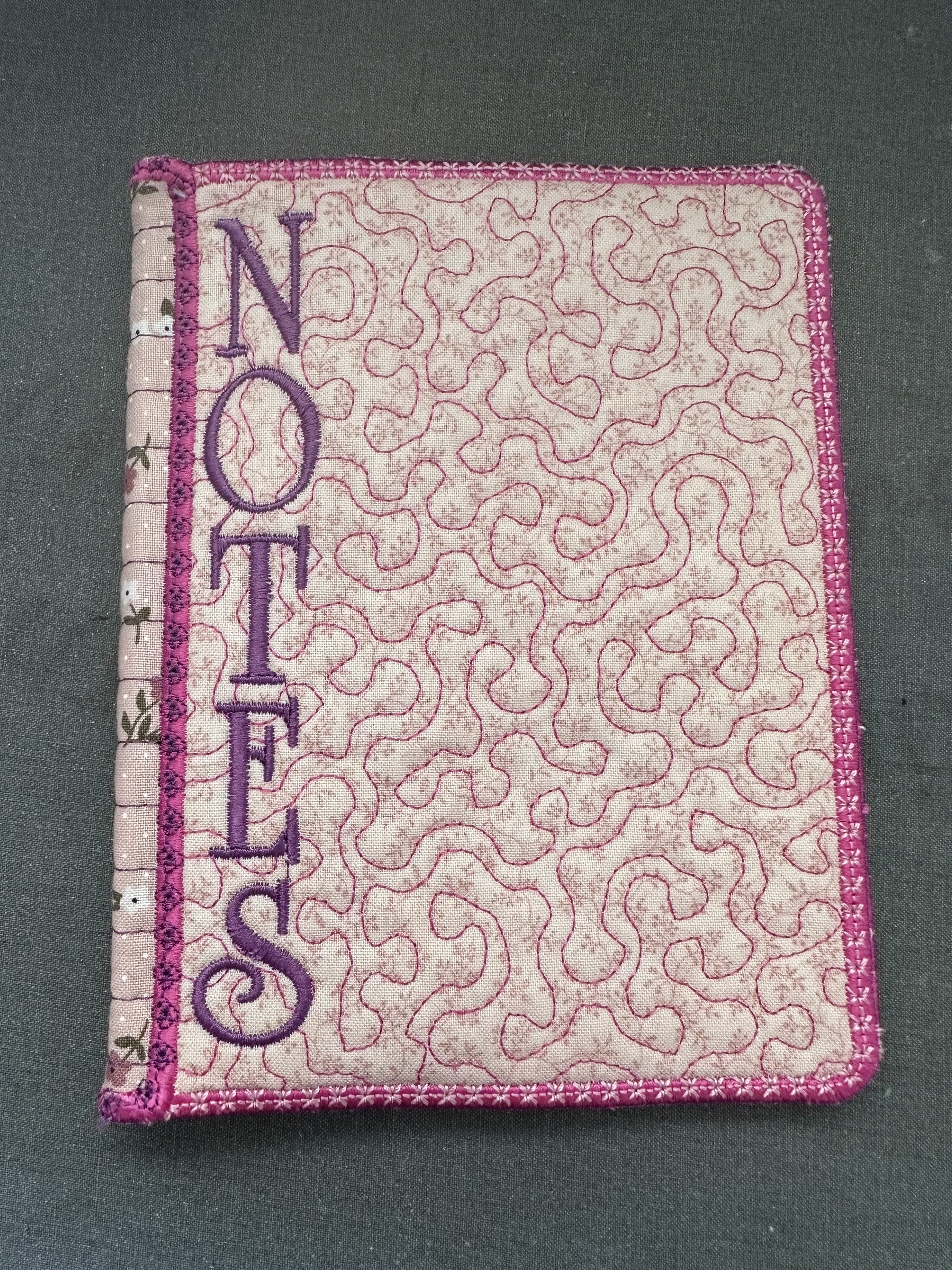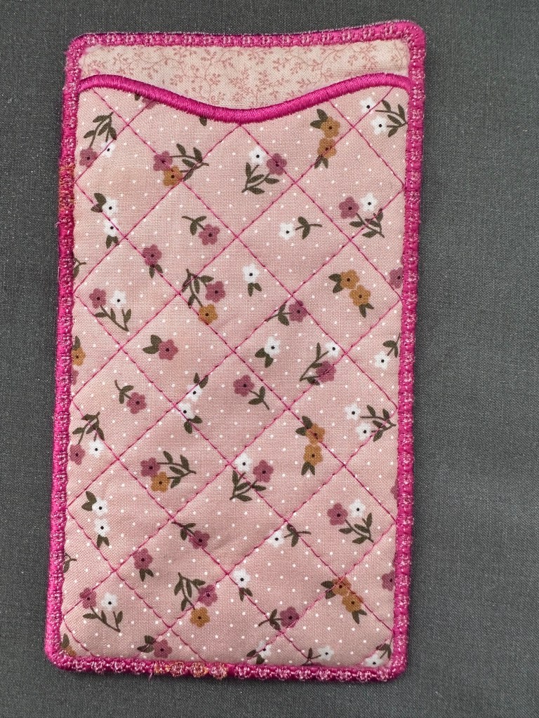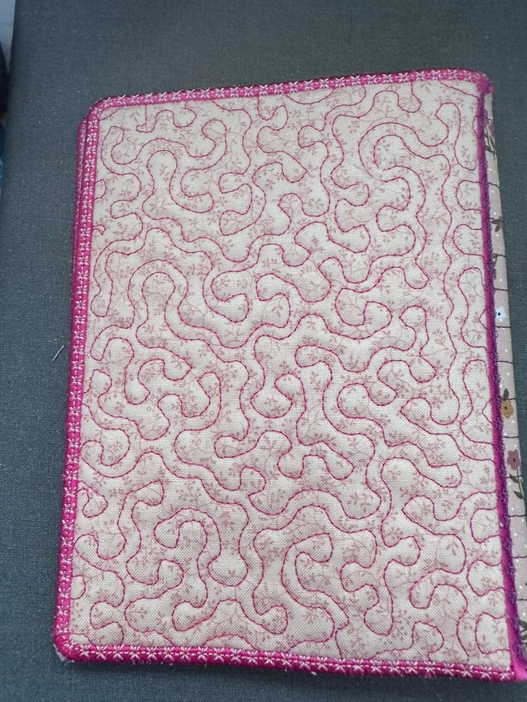 So it takes two hooping but brings the two together seamlessly, it has beautiful edging combining satin stitch with a running stitch to give an unusual finish. Two of the features I particularly like are the beautiful flower design which runs in two lines forming a pretty border, and the gorgeous quilting on the flap.