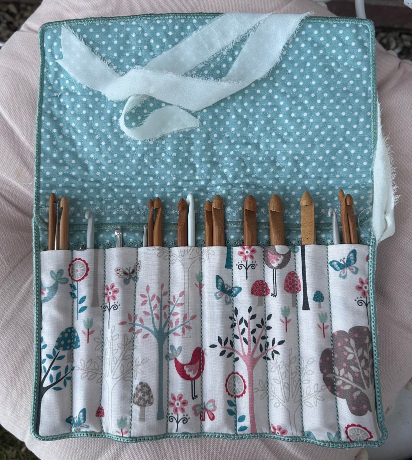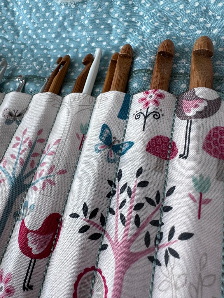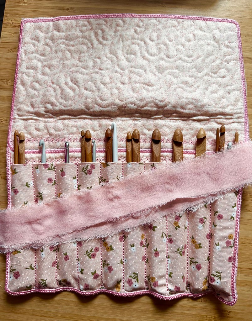 I was thrilled to be asked to test this file for a crochet hook roll by Liz the owner of Unique Sew Sweet a wonderful website full of fabulous designs ready to stitch out on your embroidery machine in the hoop. Based in the UK this shop is a machine embroidery enthusiast’s dream, as it has loads of designs which are different from the run of the mill designs but what made it especially great to me, are the instructions which are so full of all the details you need especially for someone very new to in the hoop projects. The ones I’ve completed so far have all turned out so well, I could hardly believe that I actually created them.